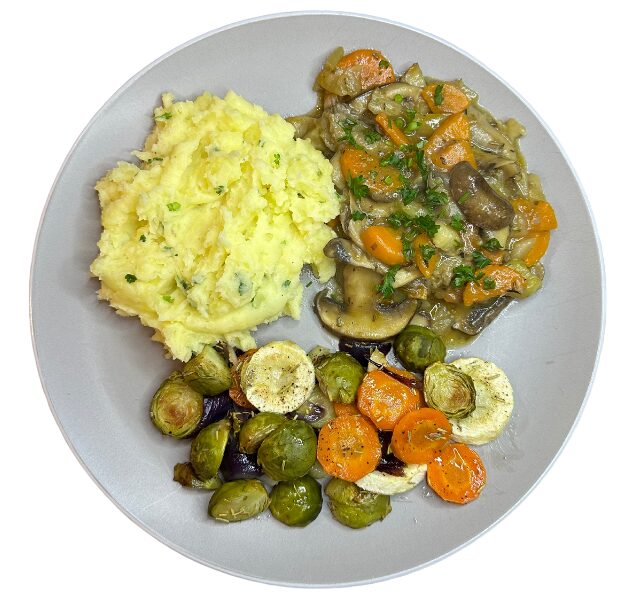 Een rijke en hartverwarmende stoof boordevol smaak! Malse paddenstoelen, gestoofd in een kruidige rode wijnsaus met wortel en knolselderij, geserveerd op een fluweelzachte aardappelpuree. Perfect comfortfood voor koude dagen, eenvoudig te maken en heerlijk voedzaam!