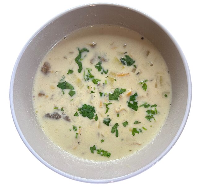 Een romige cantharelsoep met een volle, verfijnde smaak. Gemaakt van goudgele cantharellen, zachte kruiden en een vleugje room voor een fluweelzachte textuur. Heerlijk verwarmend en perfect als voorgerecht of lichte maaltijd!