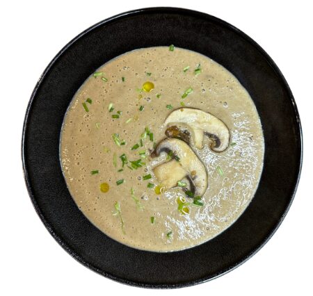 Deze fluweelzachte soep brengt de diepe smaken van kastanjechampignons samen met gekarameliseerde paddenstoelen, luchtig truffelschuim en krokante spekjes. Een smaakvol en hartverwarmend gerecht dat comfort en verfijning moeiteloos combineert – perfect voor een knusse avond of een stijlvol diner.