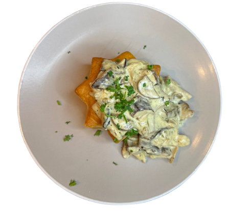 Een smaakvolle paddenstoelenragout boordevol umami, gemaakt met een rijke mix van nameko, kastanjechampignons, oesterzwammen, shiitake, maitake, koningsoesterzwam en beukenzwam. Perfect gecombineerd met een romige saus en subtiele kruiden. Geserveerd in een goudbruin gebakken STER pastijtje – een elegant, voedzaam en verrukkelijk gerecht!