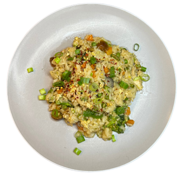 Een hartige, umami-rijke gebakken rijst met nameko, koraalzwam en black pearl paddenstoelen. Smaakvol, voedzaam en snel op tafel!