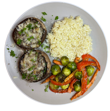 Een luxe en smaakvol gerecht met romig gevulde portobello’s, rijke truffelrisotto en perfect geroosterde groenten. De combinatie van hartige paddenstoelen, smeuïge risotto en geurende kruiden maakt dit een echte traktatie. Een elegant en voedzaam gerecht, ideaal voor een feestelijk diner of een verfijnde vegetarische maaltijd!